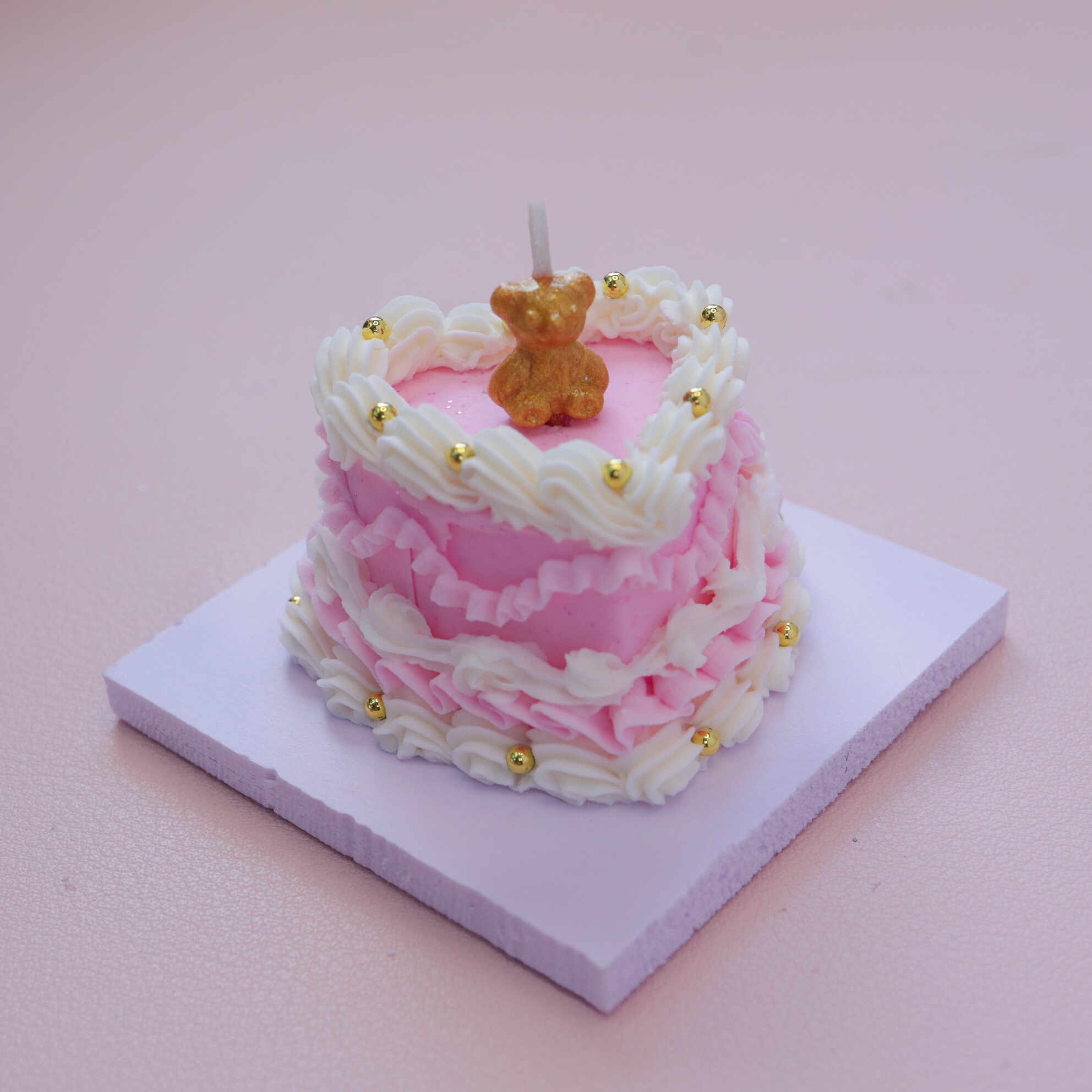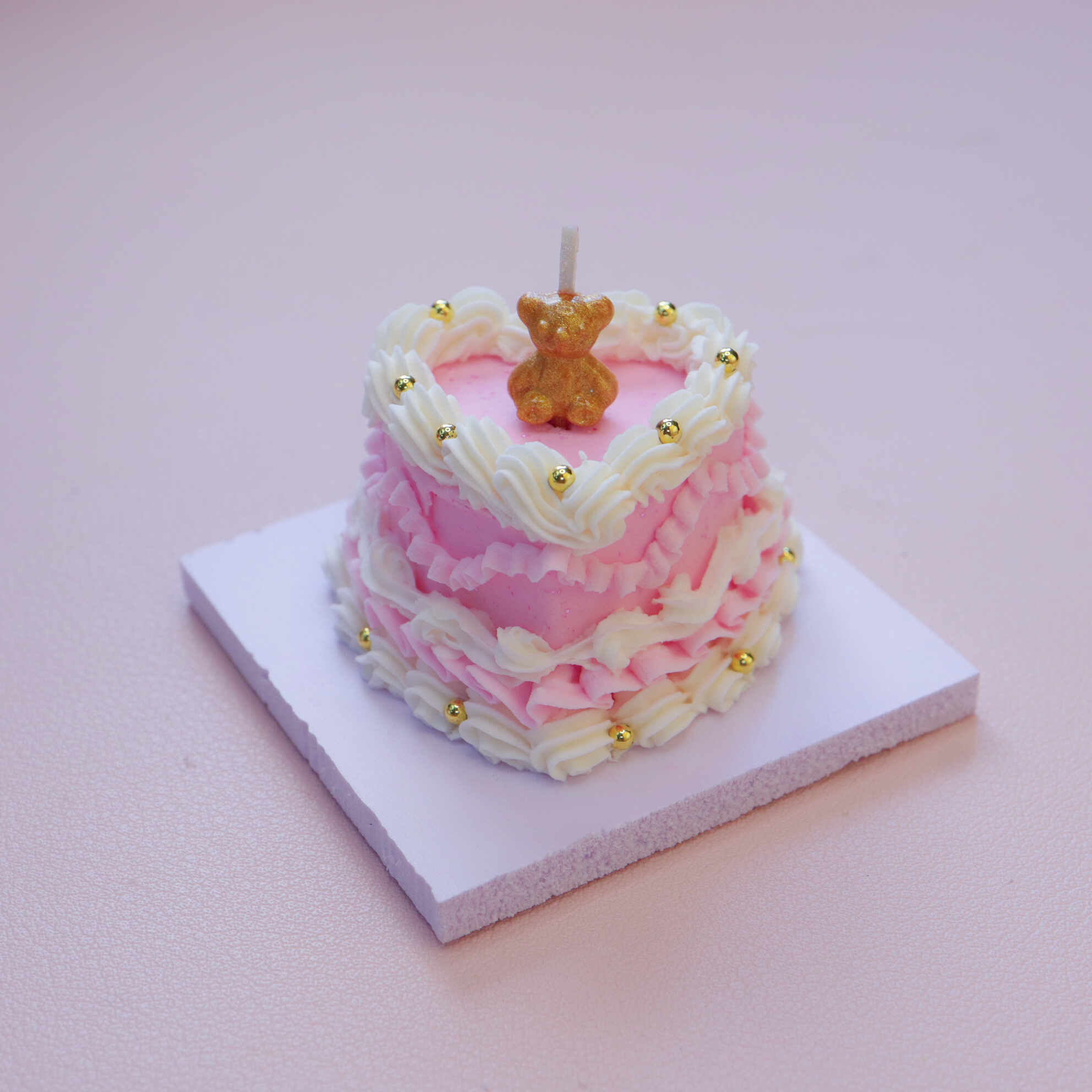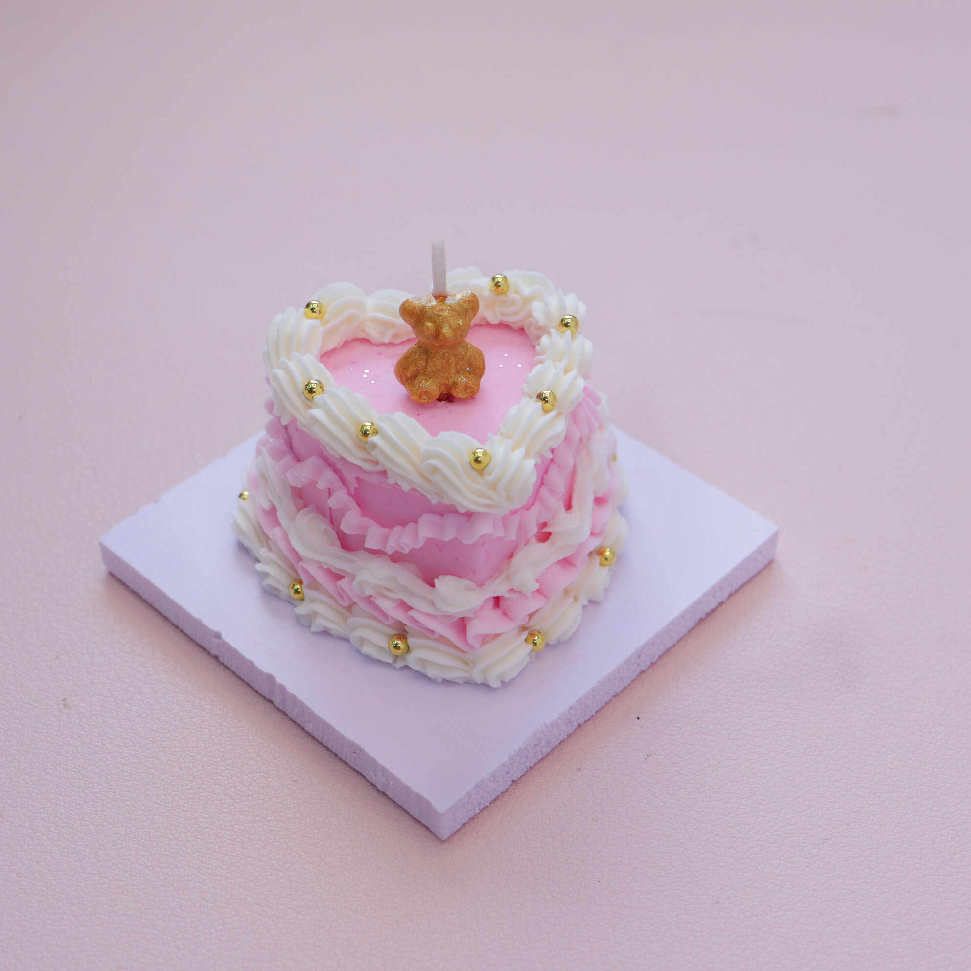 - Cake Base: Pink heart-shaped, 4-5 cm in height.