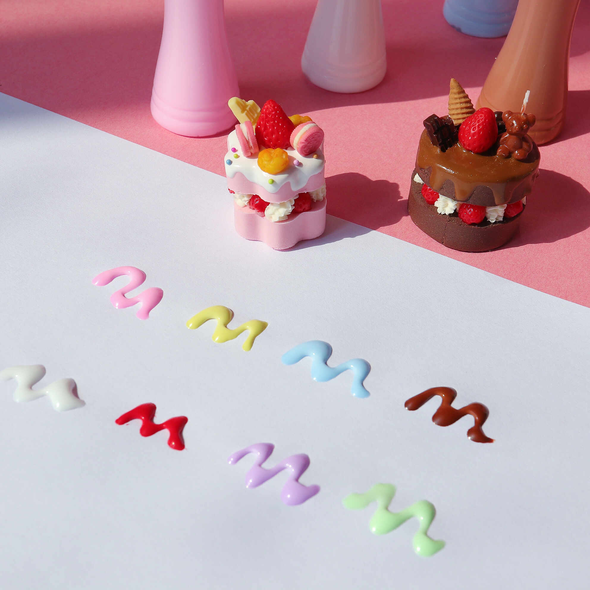 With the “Colorful Liquid Clay Jams” set, the only limit is your imagination. Transform plain clay cakes into eye-catching masterpieces with the swipe of a bottle. Dive into a world of color and creativity, and let these liquid clays make your confectionery designs come alive!