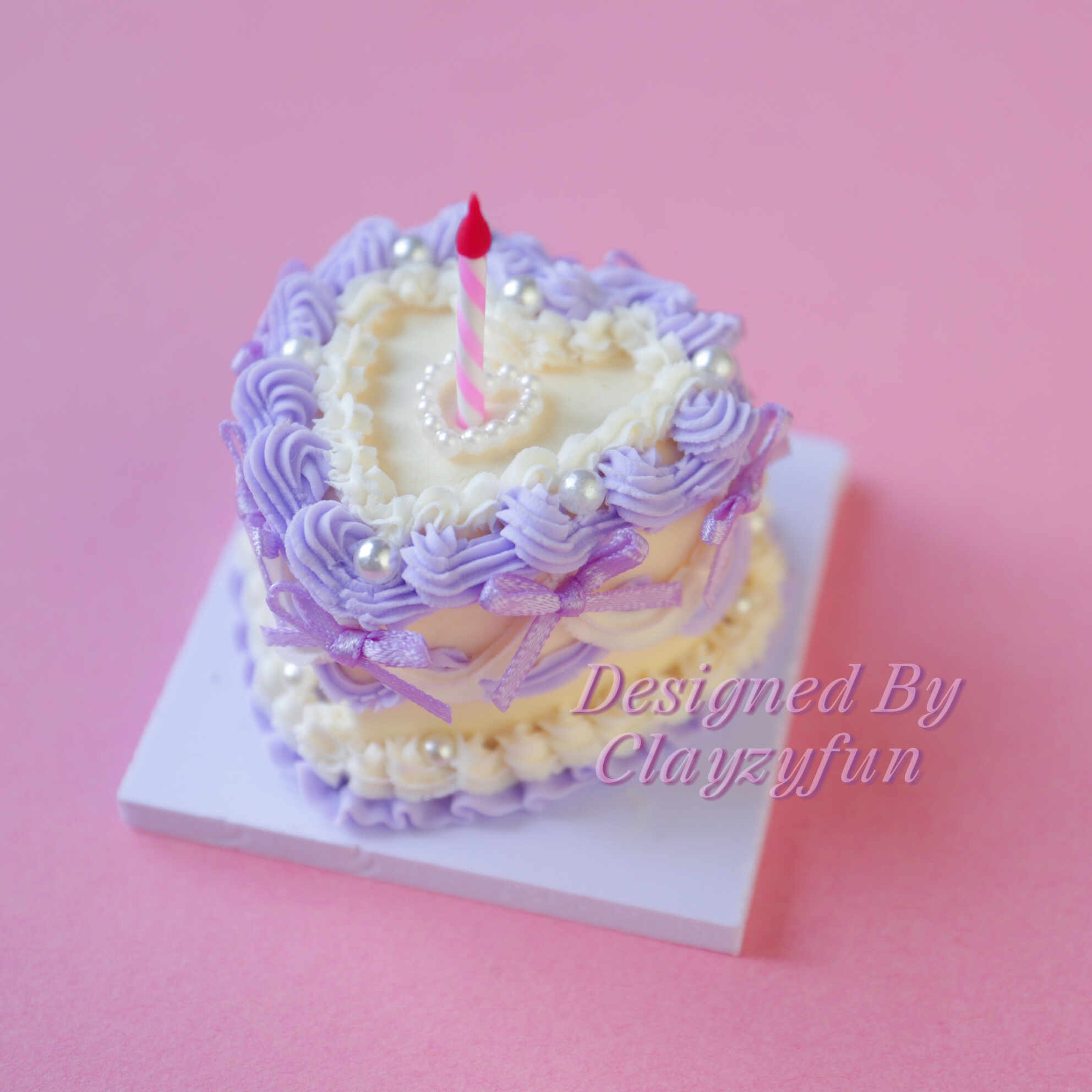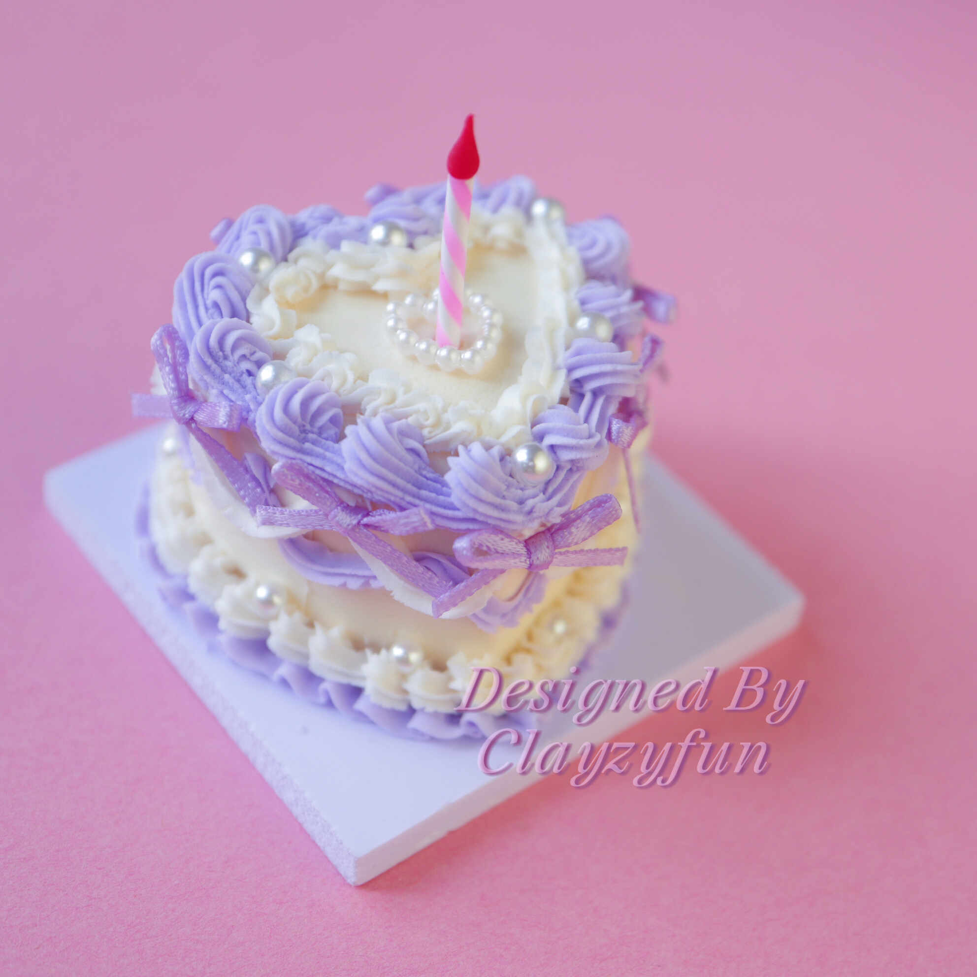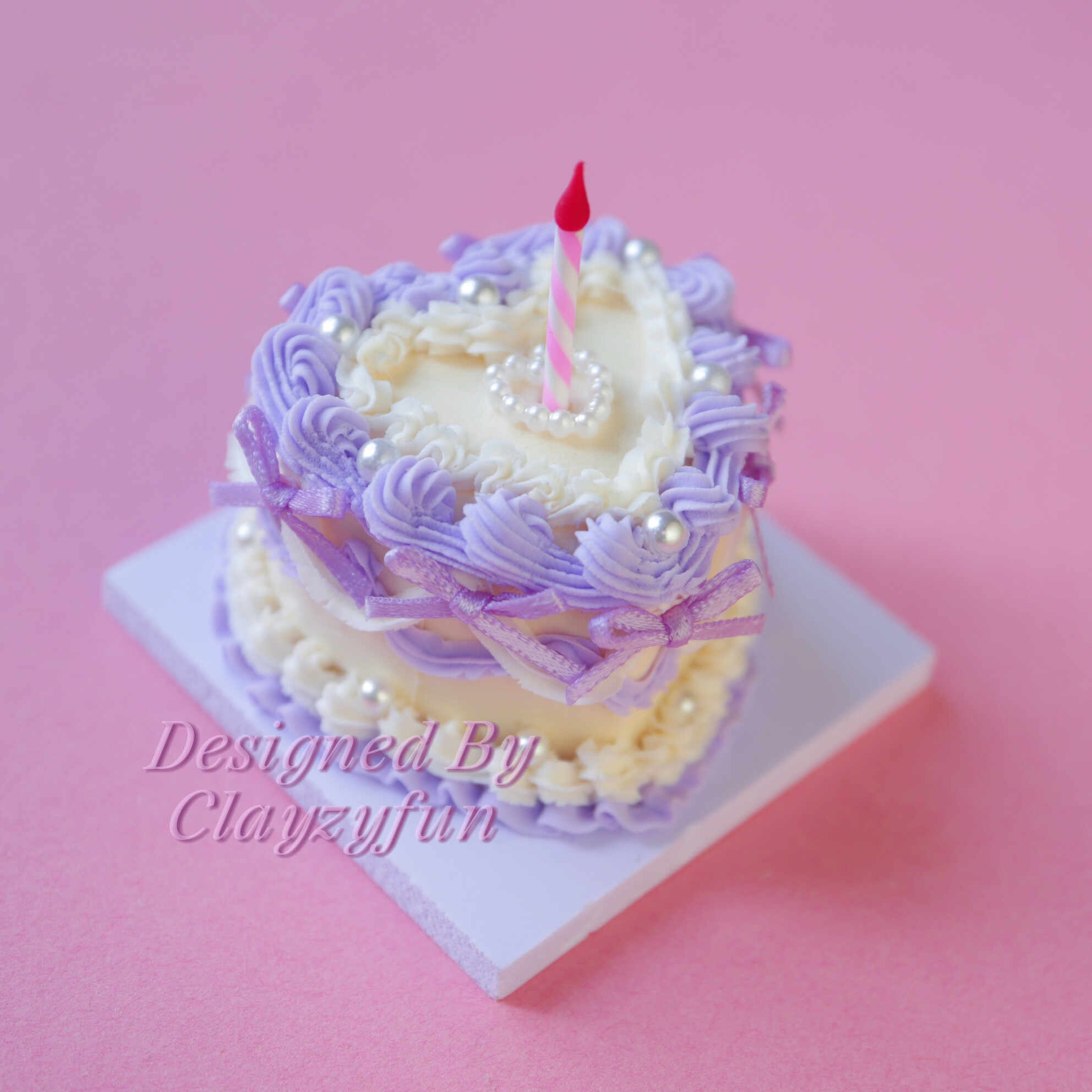 Indulge in the whimsical charm of the Lavender Love mini cake kit. This heart-shaped delight features a soft pastel color palette, combining lavender and creamy yellow icing to create an enchanting design. Adorned with delicate pearls, mini bows, and a heart-shaped pearl centerpiece, this cake is perfect for adding a touch of elegance to any space. Topped with a mini striped candle, it’s a celebration of beauty and sweetness.