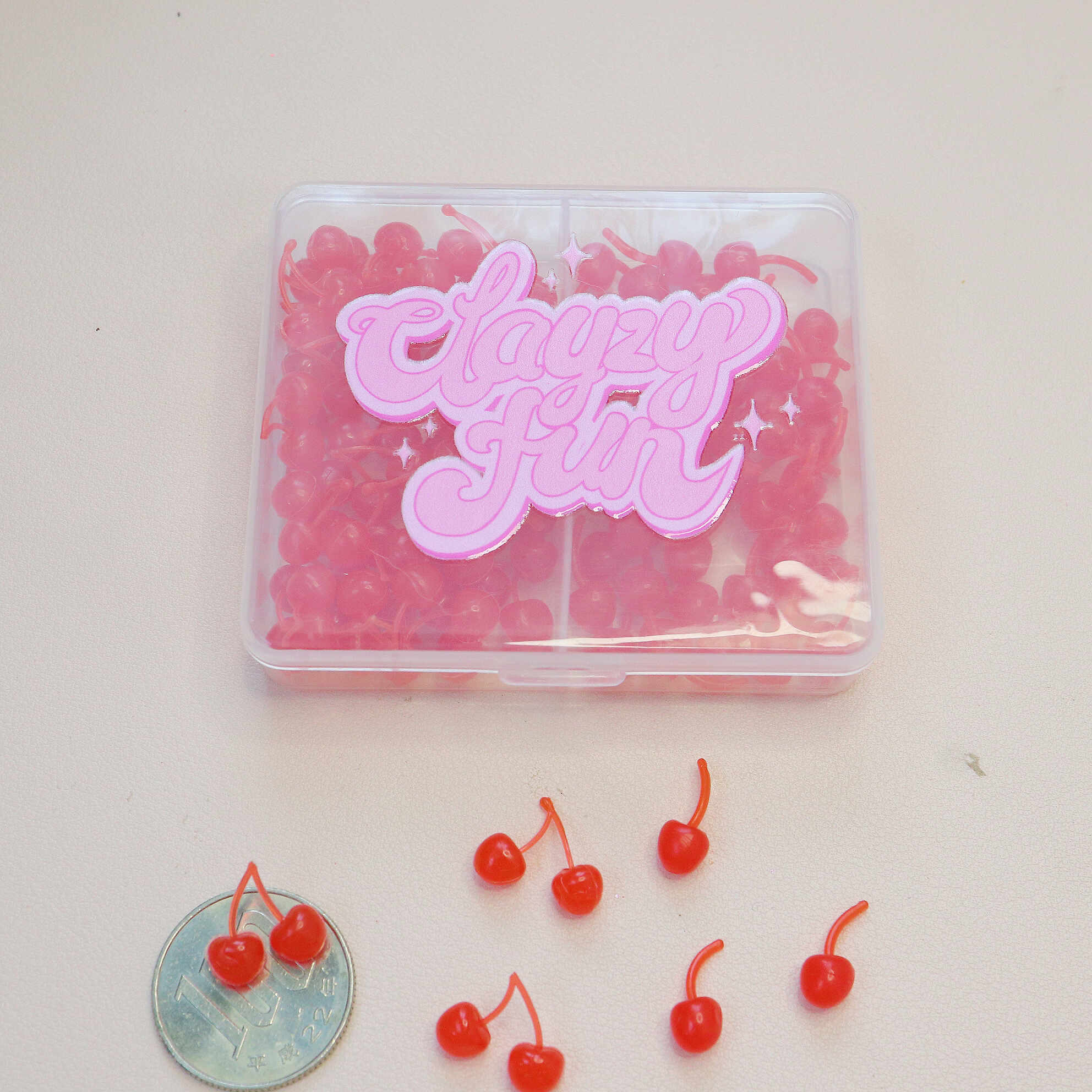 - Resin Cherries: A generous assortment of mini resin cherries, divided into two compartments for easy storage and use.