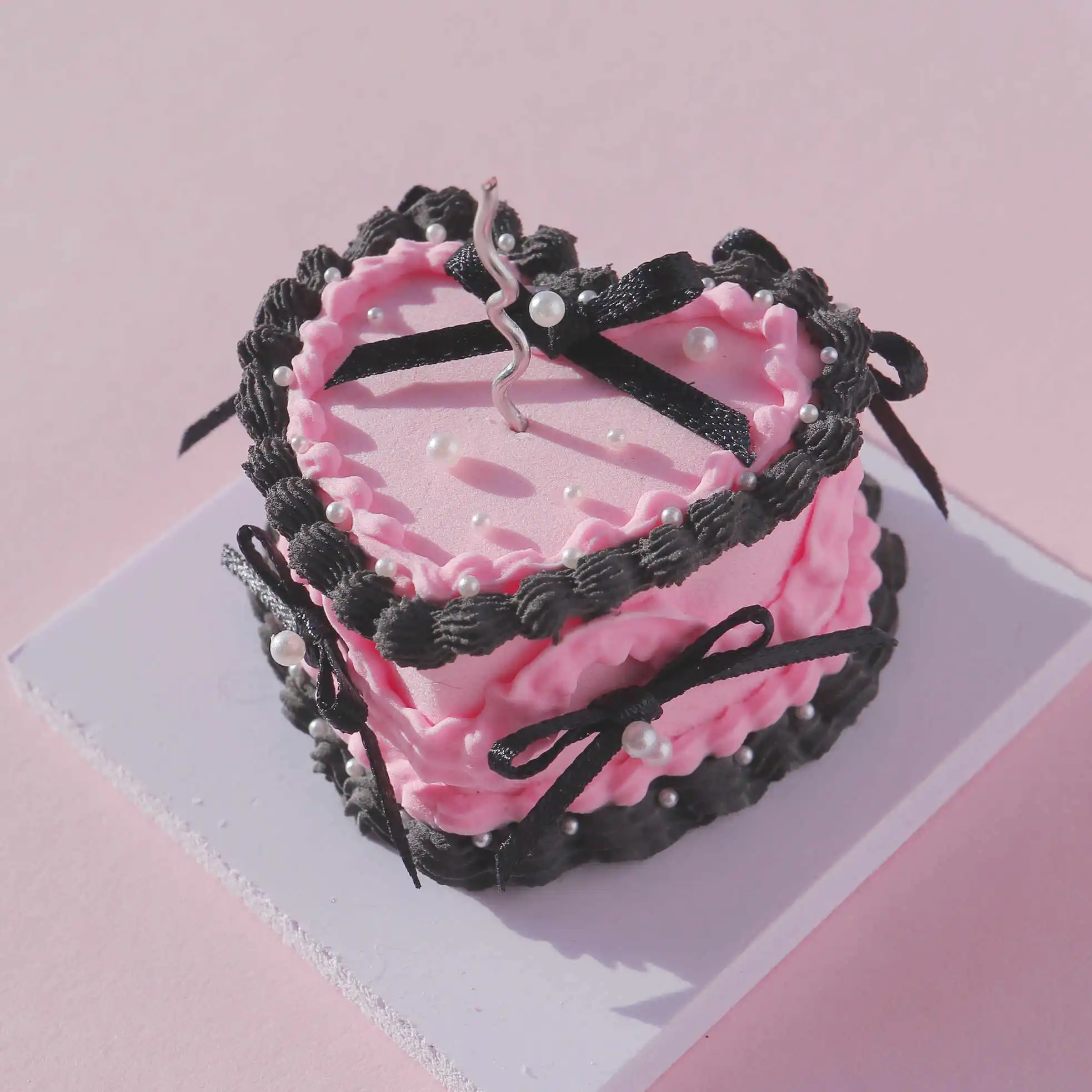 - A heart-shaped pink air dry clay cake base, ready to be adorned