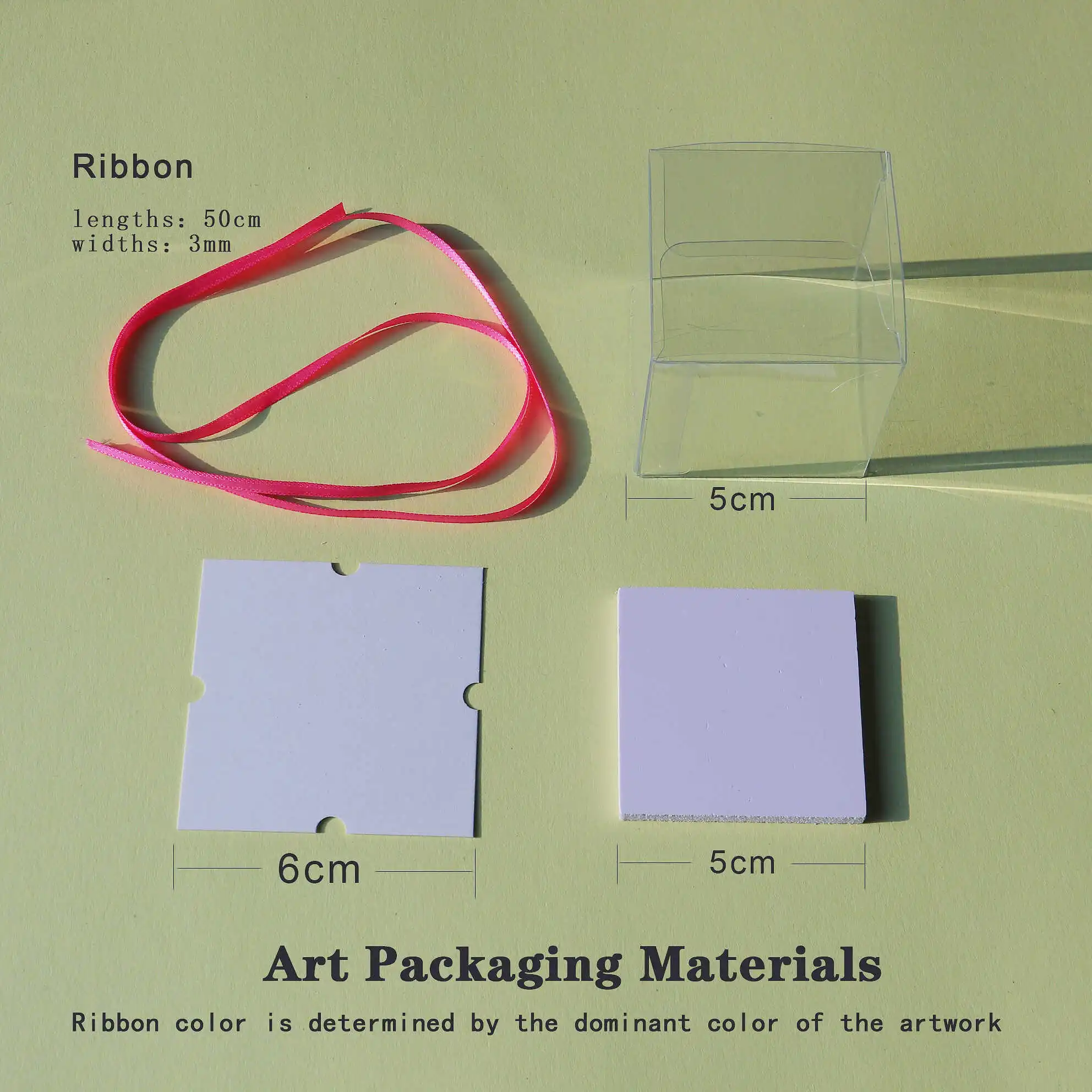 Comes with a white baseboard, card, clear display box & satin ribbon