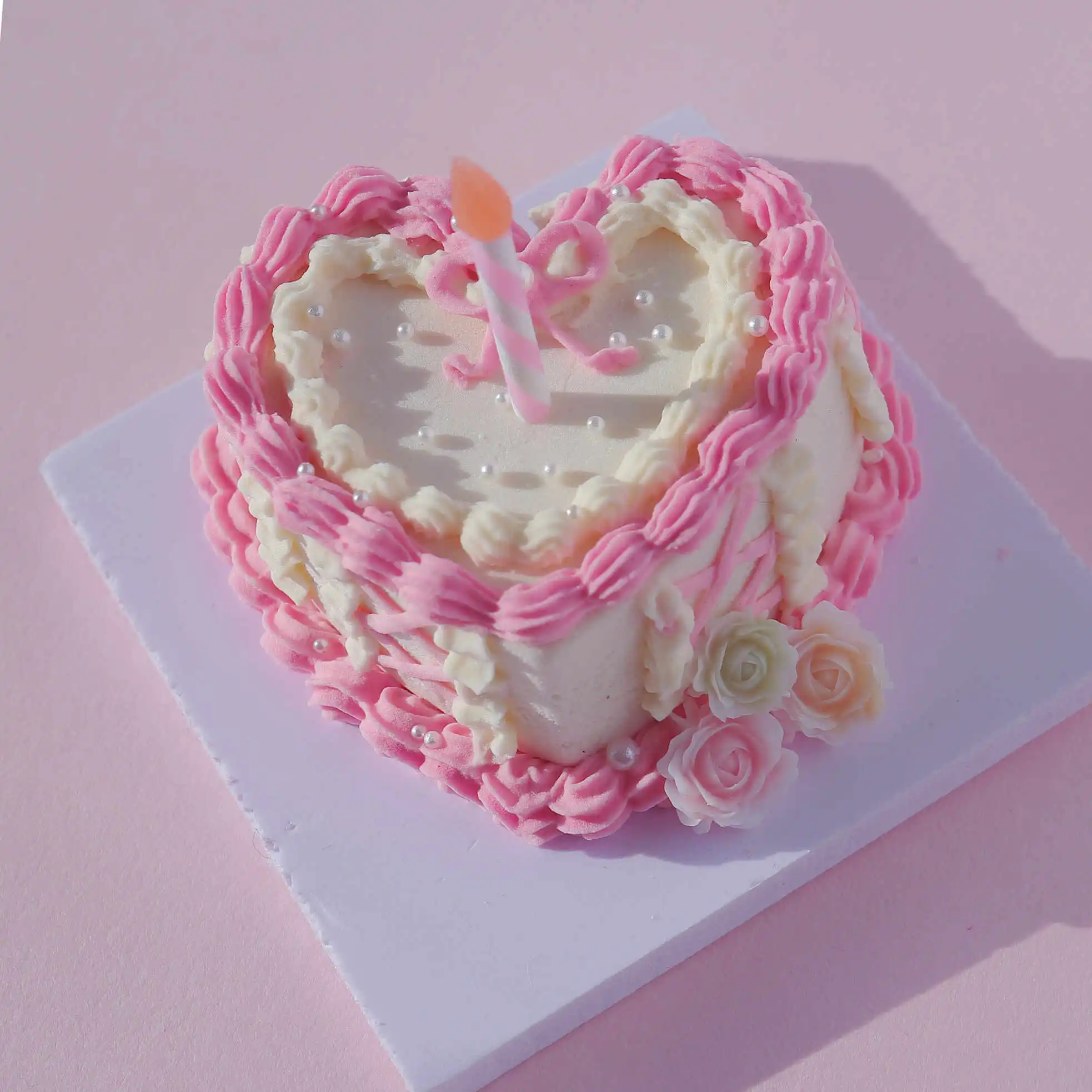 This kit is a celebration of love and Y2K nostalgia. The heart-shaped base in sunny yellow is complemented by the vibrant hues of yellow and pink cream clay, ideal for frosting your mini cake. The pink ribbon candles, pearls, and resin flowers add a touch of elegance and playfulness, perfect for creating a piece that echoes the Y2K era.